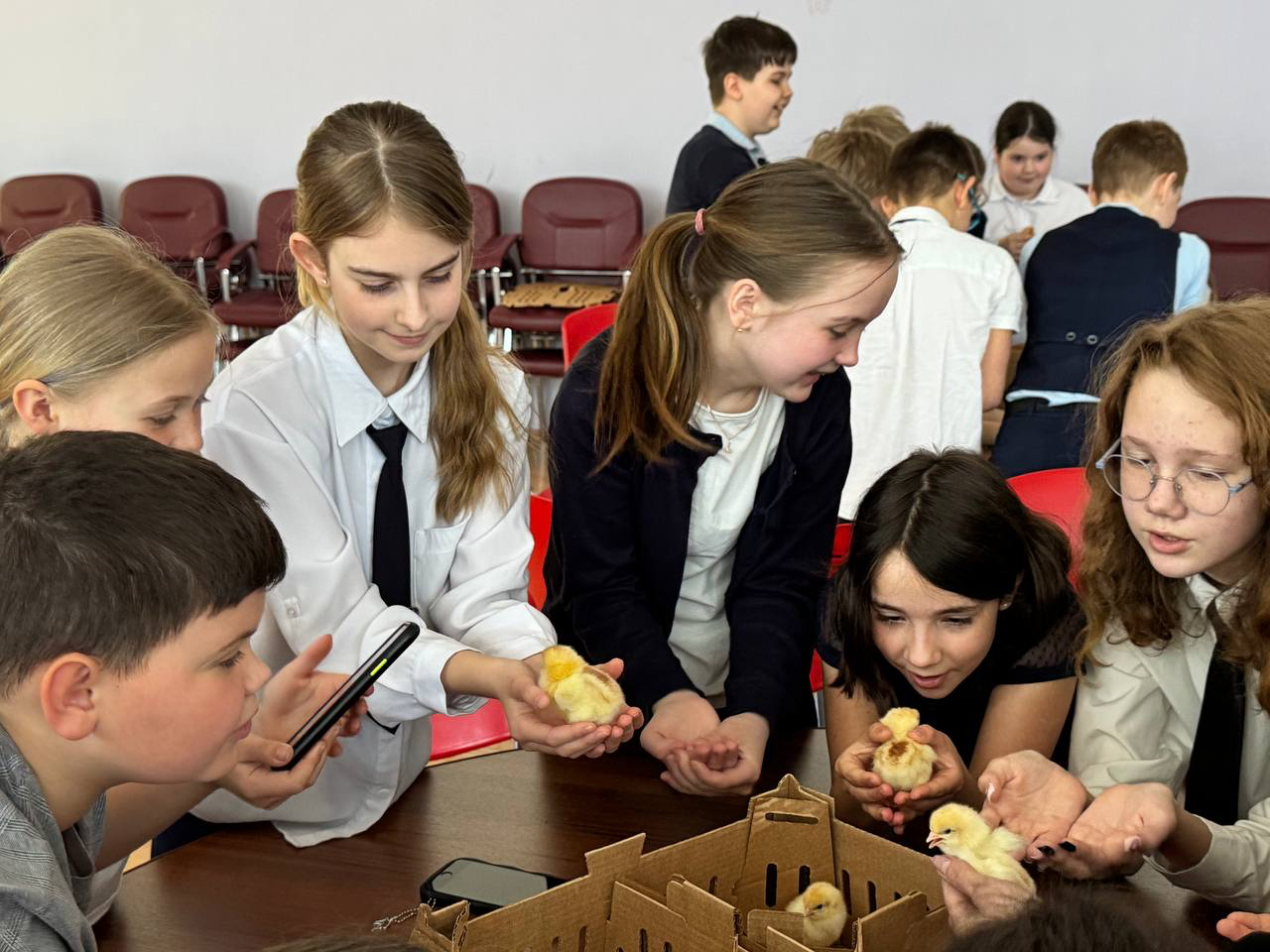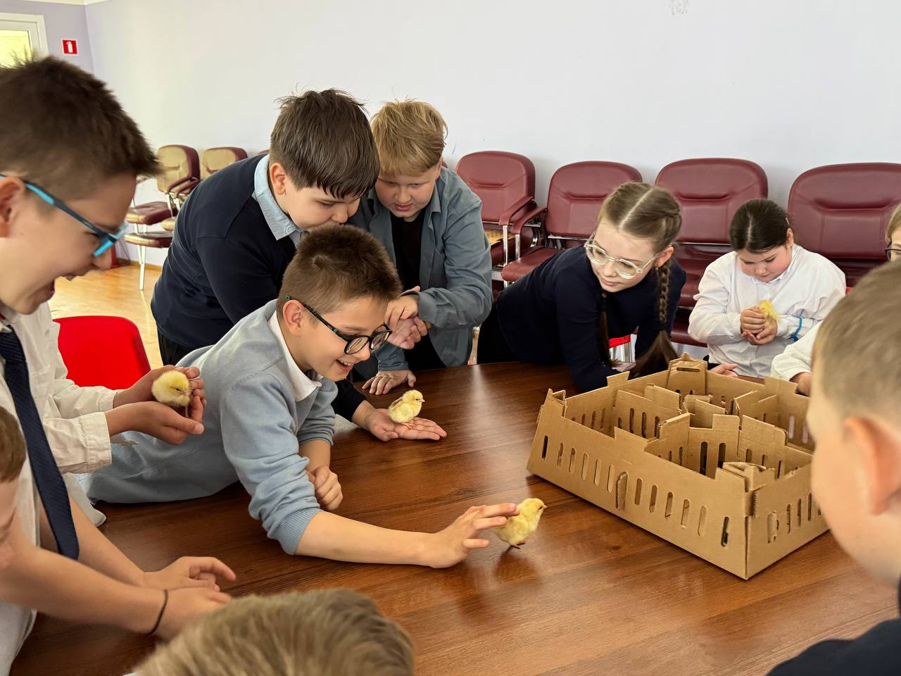 Ведущие специалисты птицефабрики Роскар провели занятие с агроклассами - 4й класс МБОУ "Первомайский центр образования" - Первомайская школа. На занятии по направлению животноводство ребятам рассказали о предприятии, показали путь, которые проходит яйцо от курицы до прилавка магазина, показали автоматизированные системы и роботов, которые применяются на производстве. Школьники узнали интересные факты о яйцах - почему скорлупа такая прочная, как развивается и вылупляется цыпленок, как отличить цыпленка курочку от петушка. Провели практическое занятие и научили ребят это делать.